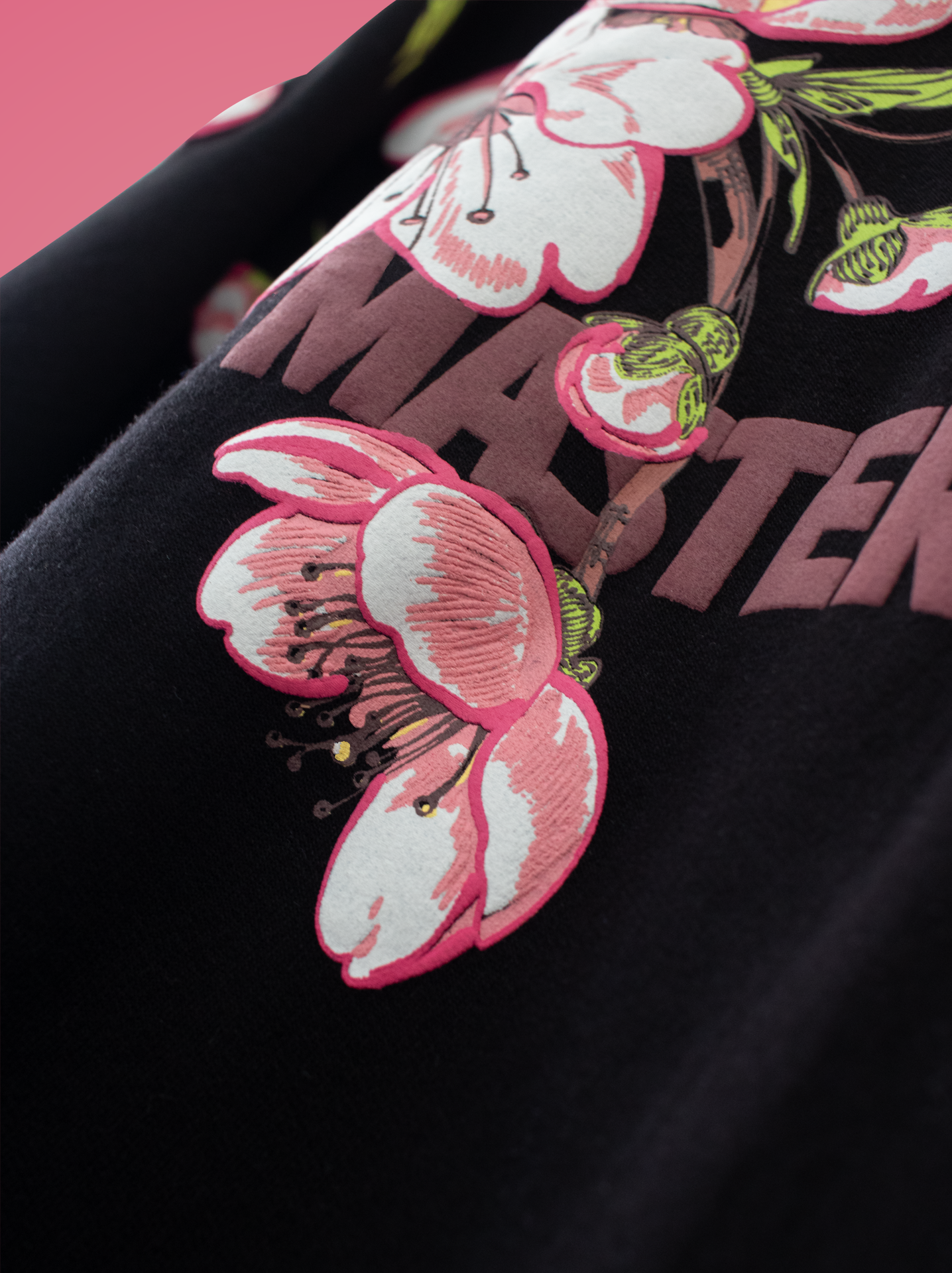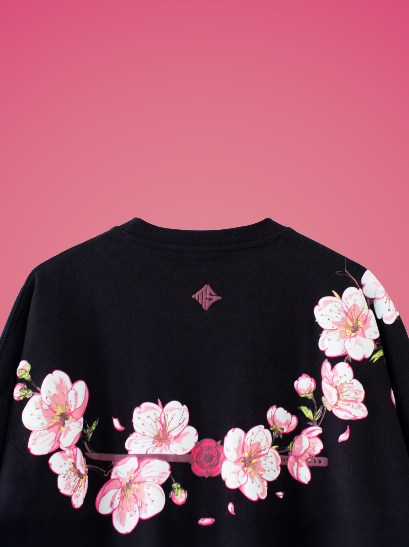 Crafted from luxurious 240 GSM heavyweight cotton, this kimono-style tee drapes effortlessly for a bold yet comfortable fit. The highlight is the exquisite puff print Sakura (cherry blossom) artwork, wrapping gracefully from the front to the back, creating a seamless flow of vibrant pink and white blossoms across a rich Obsidian black canvas.